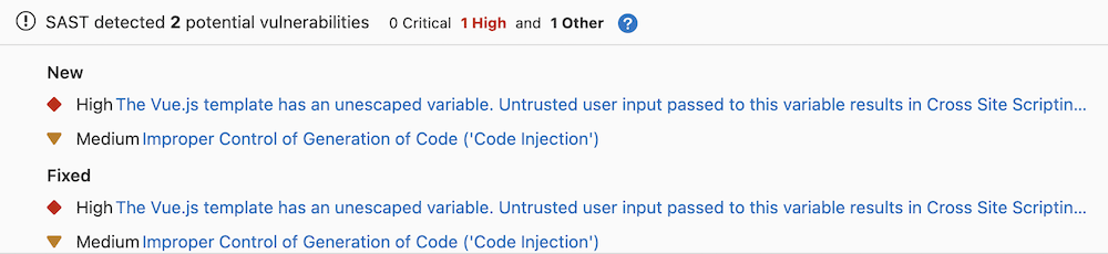 GitLab SAST uses an advanced vulnerability tracking algorithm to more accurately identify when the same vulnerability has moved within a file due to refactoring or unrelated changes.