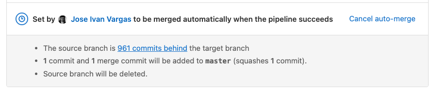 If you review a merge request and it's ready to merge, but the pipeline hasn't completed yet, you can set it to merge when the pipeline succeeds (MWPS). You don't have to remember later to merge the work manually: